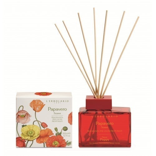 Der feine und verführerische Duft der Mohnblüte, deren leuchtende Farben die italienischen Wiesen und die orientalischen Hochebenen erglühen lassen, wird über die parfümierten Holzstäbchen aus dem edlen, scharlachroten Flakon, der sich elegant in die Einrichtung einfügt, abgegeben und verteilt sich…